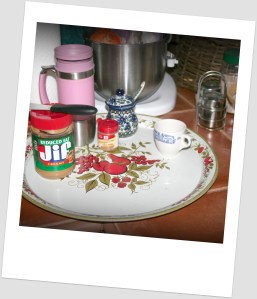 And then depending on what’s on the menu I place whatever non-refrigerated items will save me time in the morning. Peanut butter toast seems to be what I was prepping for in this picture. Some days it’s the cereal box, other days it’s the salt and pepper shakers for eggs, or syrup for pancakes.