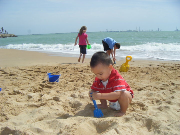 Tripp’s first forays on a beach were in Chiclana de la Frontera, Spain. A small coastal beach town, just south of Rota Naval Station. A group of us had gone for the day and the men were laying around, their American-ness evident by drinking beer from cans and playing frisbee before flopping down on “Budweiser” logo towels. I was a new Mom, I was loaded up with the latest beach gear for babies. We had the pop-up tent, the 6 coordinating swim outfits, the sunscreen, the hats, the diapers, nursing cover, sand toys, Baby Bjorn. We had it all. I don’t remember much about that day except trying to crouch down in the pop-up tent to nurse Tripp and holding his pudgy 4 month old body as he felt the sand for the first time. He was unsure and kept pulling his feet up, not comfortable with this new texture. He seemed to like it but he wasn’t impressed either way. It was a perfect day for us though, introducing our first born to the mystery of the ocean in the country where he first called home.